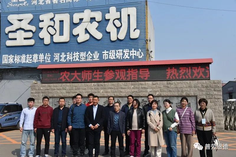 2023年3月29日,河北農大機電工程學院郝建軍副院長、趙樹鵬副院長,博導,教授,院系師生一百三十多人到訪河北圣和農業機械有限公司參觀指導