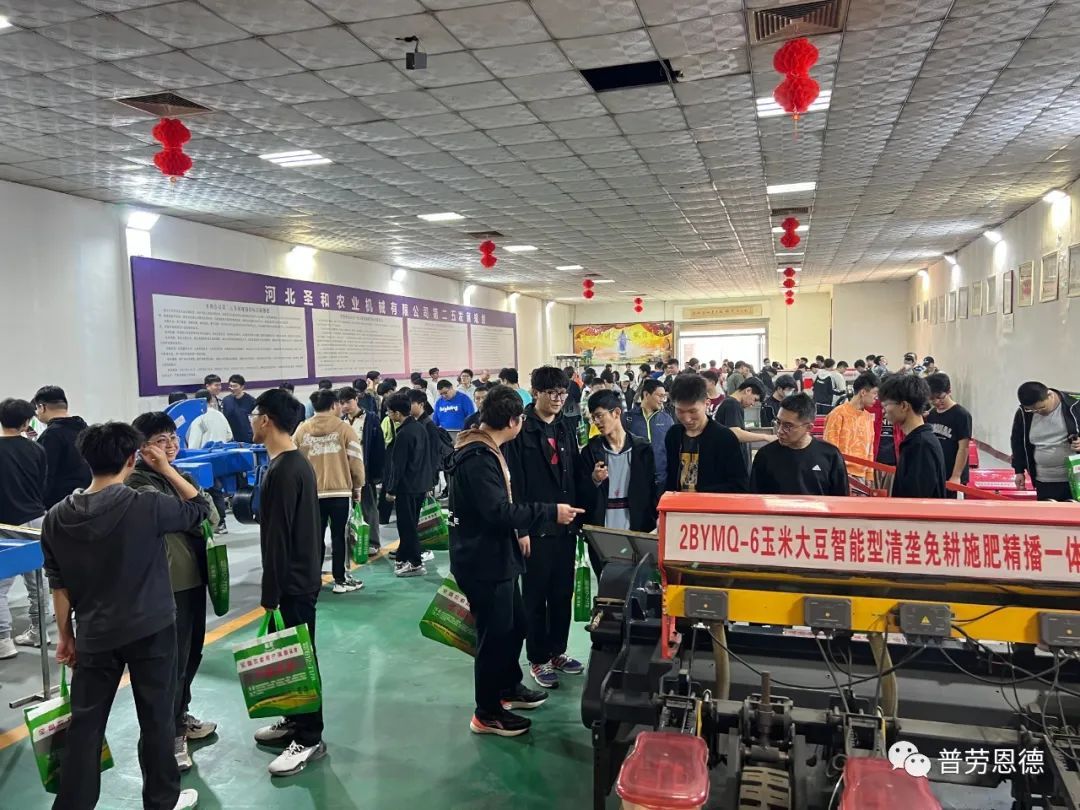 在2022年8月底,河北圣和農業機械有限公司受河北農業大學邀請,合作舉辦“研究生與本科生走近農機,深入了解農機產品實踐活動”,當時受新冠疫情影響,采取線上視頻直播形式舉辦分享圣和農機的產品與圣和公司發展的概況。本次河北農大機電工程學院學院郝建軍副院長、趙樹鵬副院長等領導與師生到圣和實踐參觀考察,學生們對圣和的產品與公司的發展有了更深入的體驗與了解,并對圣和生產工藝贊不絕口,紛紛表示受益匪淺。